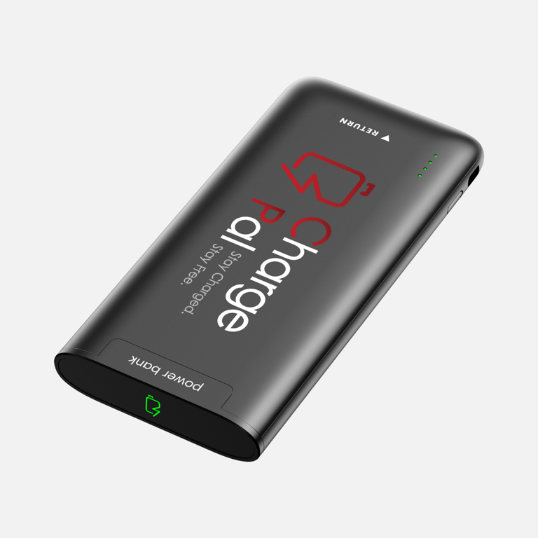Find Charge Pal power bank rental stations at cafes, malls, airports, and events to keep your devices charged on the go.